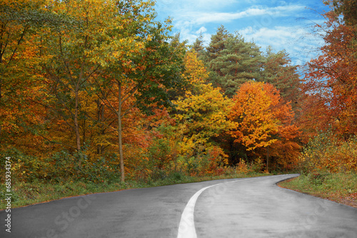 Fototapeta premium Beautiful view of asphalt road going through autumn forest