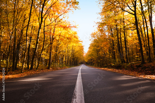 Obraz premium Beautiful view of asphalt road going through autumn forest