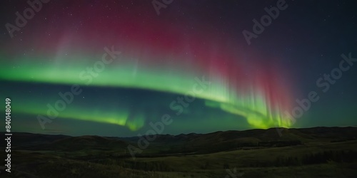 Fototapeta premium Beautiful view of aurora in northern sky night over the hills, borealis northern lights background wallpaper