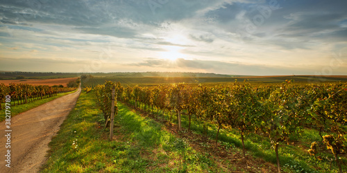 © Rostislav Sedlacek, Fototapeta premium Beautiful view of autumn vineyards at sunset