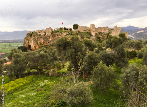 © OLAYOLA, Obraz premium Beautiful view of Beсin Castle Milas Turkey in spring