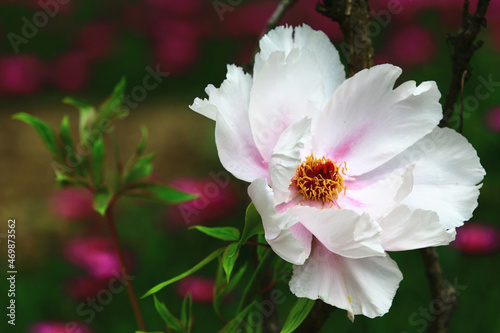 © qaz1235, Fototapeta premium beautiful view of blooming white Peony flower,close-up of white with pink Peony flower blooming in the garden