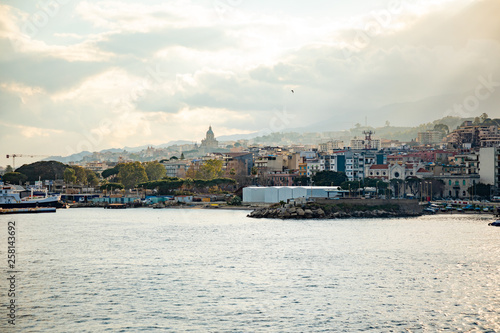 Naklejka premium Beautiful view of cityscape and harbor of Messina from ferry, Sicily, Italy