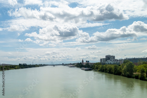 © Oana, Fototapeta premium Beautiful view of Danube river from bridge in Vienna, Austria, summer day