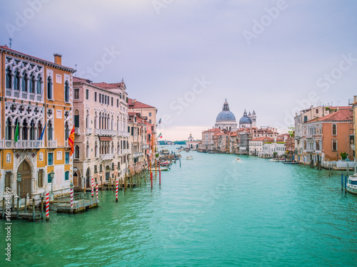Fototapeta premium Beautiful view of famous Canal Grande with Basilica di Santa Maria della Salute. View of Canal Grande from Accademia's bridge. Venice, Italy.