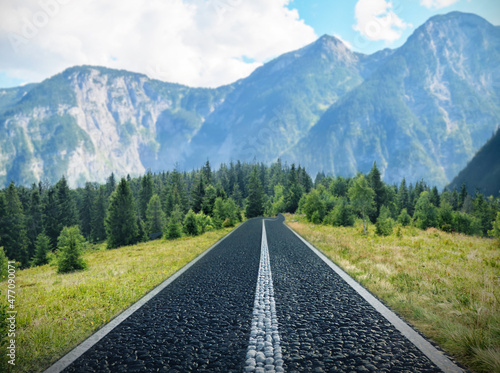 Naklejka premium Beautiful view of forest and empty road leading to mountains