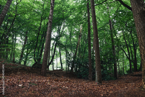 Obraz premium Beautiful view of forest with many different green trees