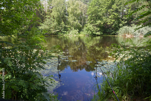 © Naz, Fototapeta premium Beautiful view of landscape, river in the forest in summer time.