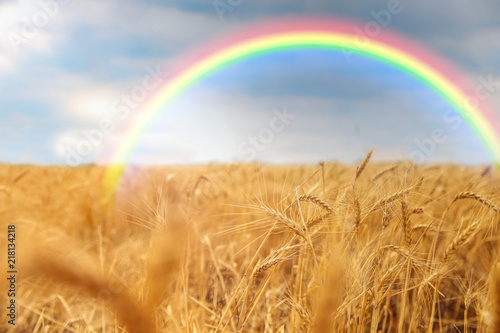 © New Africa, Obraz premium Beautiful view of landscape with rainbow and wheat field