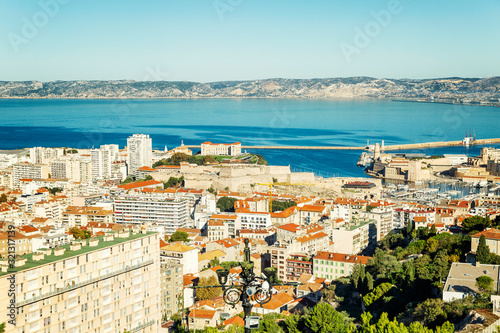 Naklejka premium Beautiful view of Marseille from above on a bright sunny day.