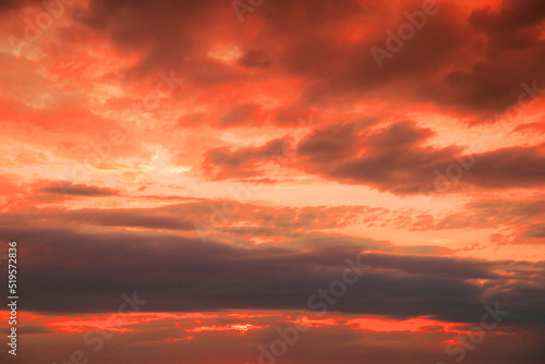 Fototapeta premium Beautiful view of orange sky with clouds at sunset