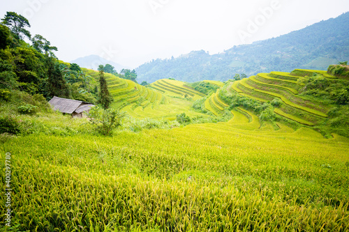 © Nhan, Fototapeta premium Beautiful view of Rice terrace at Hoang Su Phi. Viewpoint in Hoang Su Phi district, Ha Giang province, Vietnam