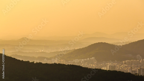 Naklejka premium Beautiful view of Seoul from the Asan Mountain at sunset, South Korea