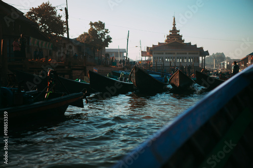 Fototapeta premium Beautiful view of small harbor for tourists around Inle Lake Myanmar.