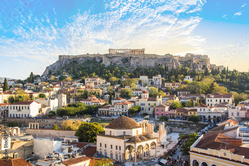 Obraz premium Beautiful view of the Acropolis and Monastiraki area in Athens, Greece
