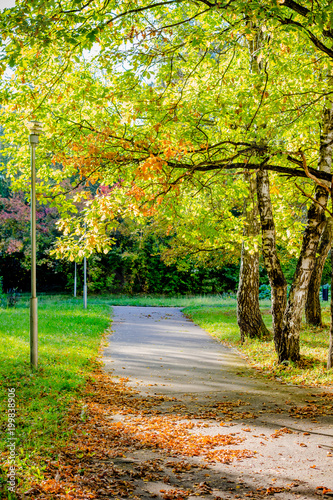© PhotoChur, Naklejka premium Beautiful view of the autumn park in the sunlight