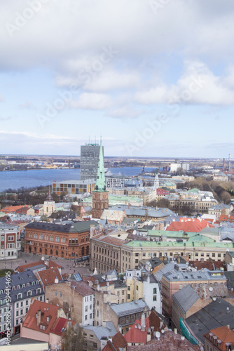 © marinadatsenko, Fototapeta premium Beautiful view of the city center near the Daugava River in Riga, Latvia