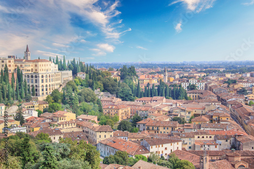 Fototapeta premium Beautiful view of the hill of San Pietro and the panorama of the city of Verona, Italy