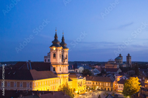 Naklejka premium Beautiful view of the Minorit church and the panorama of the city of Eger,...