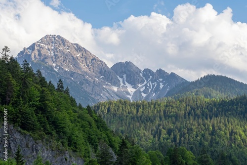 © Olha, Fototapeta premium Beautiful view of the mountains and Alps mountain range in Austria. Mountain landscape.
