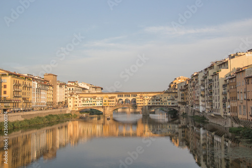 Naklejka premium Beautiful view of the Ponte Vecchio bridge across the Arno River in Florence,...