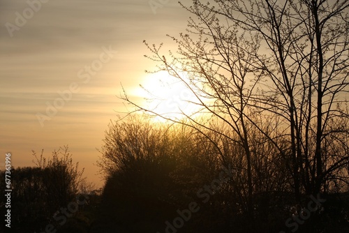 Obraz premium Beautiful view of the sunset from the field