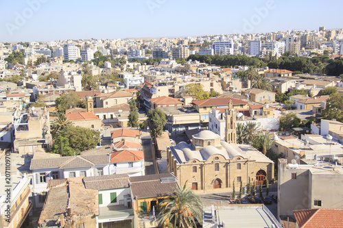 Fototapeta premium Beautiful view of the Turkish part of the city and the flag in Nicosia, Cyprus
