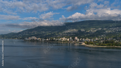 © Timon, Naklejka premium Beautiful view of town West Vancouver, British Columbia, Canada on the shore of Burrard Inlet with Ambleside Park and residential high-rise buildings.