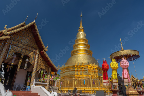 © suksamranpix, Fototapeta premium beautiful view of Wat Phrathat Hariphunchai, Lampoon, Thailand