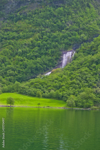 Fototapeta premium beautiful view of waterfalls and green nature in norway