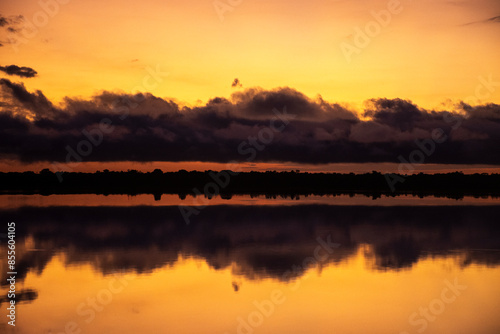 © Cavan, Fototapeta premium Beautiful view to amazon rainforest sunrise over Negro River