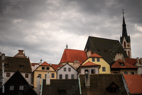 Naklejka premium Beautiful view to church and castle in Cesky Krumlov, Czech republic