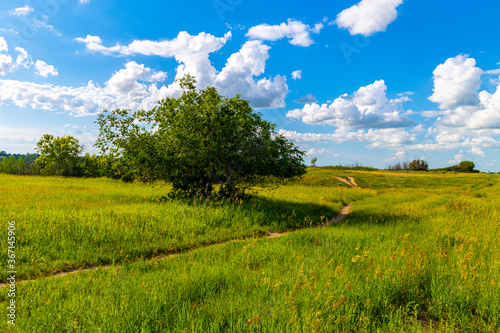 © Sask Photography, Obraz premium Beautiful views of nature along a hiking trail beside the South Saskatchewan River near Saskatoon Saskatchewan, Canada