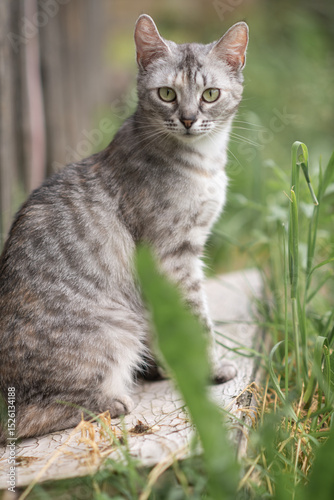 Fototapeta premium Beautiful village cat in a summer village.
