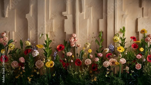 © Kartik, Fototapeta premium Beautiful wall with flowers and plants toned