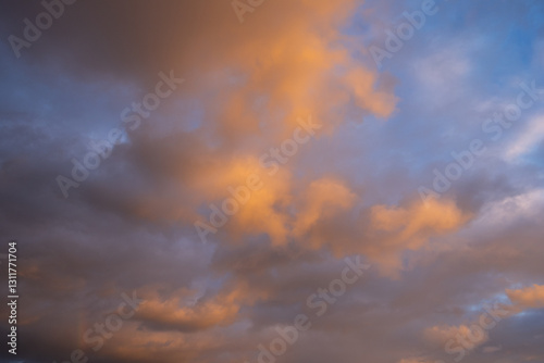 Fototapeta premium Beautiful warm clouds on the sunset sky.