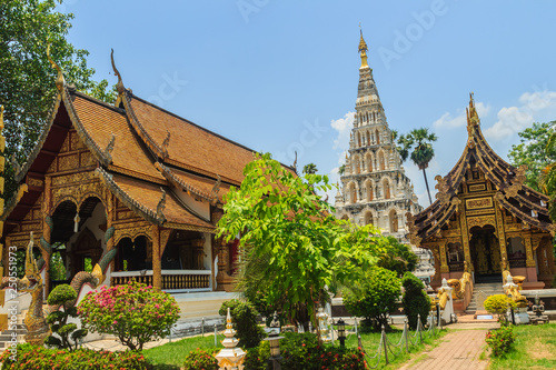 Naklejka premium Beautiful Wat Chedi Liam (Temple of the Squared Pagoda), the only ancient temple in the Wiang Kum Kam archaeological area that remains a working temple with resident monks at Chiang Mai, Thailand.
