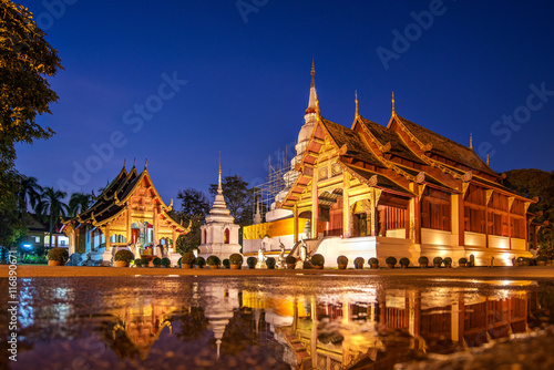 Fototapeta premium Beautiful Wat Phra Sing temple,Reflection in standing water Chi