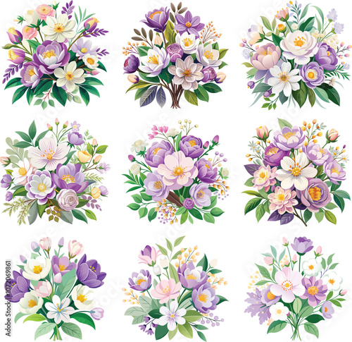 © Md Mithu Mia, Fototapeta premium Beautiful Watercolor Floral Vector Illustration. Cute hand drawn flat vector flowers, leaves, berries. Vector illustration for card, banner, poster, wedding invitation. Floral spring poster