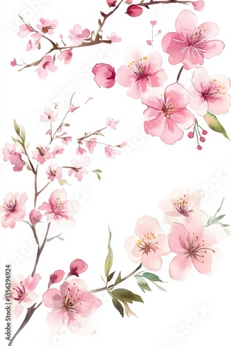 © bejo, Fototapeta premium Beautiful watercolor illustration of delicate pink blossoming cherry branches