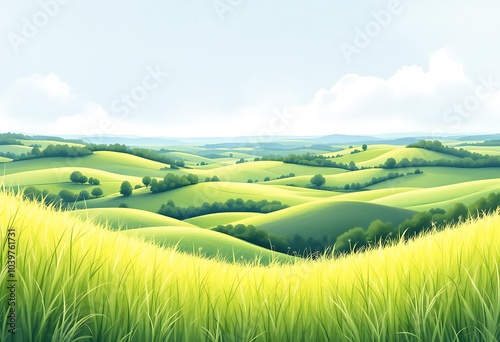 Obraz premium Beautiful watercolor image of meadows and blue sky