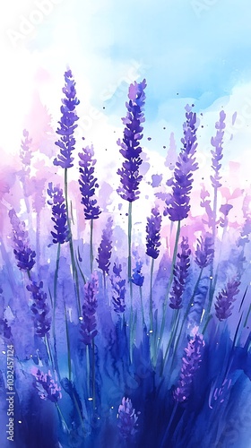 Fototapeta premium Beautiful Watercolor Lavender Field Painting