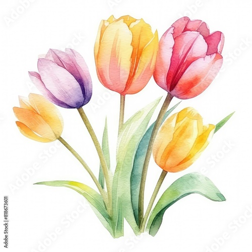 © Suwanlee, Fototapeta premium Beautiful watercolor Tulip flower