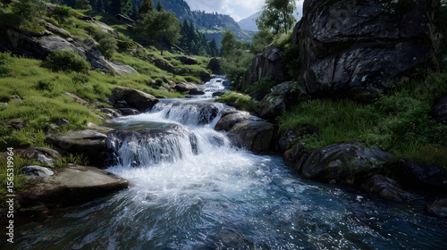 Obraz premium Beautiful waterfall flowing in the middle of mountain.