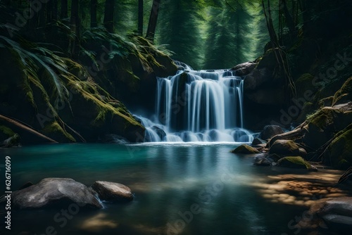 © Muhammad, Fototapeta premium beautiful waterfall in the forest generated by AI tool