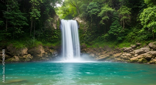 Fototapeta premium Beautiful waterfall landscape scenery with clear turquoise water and lush...