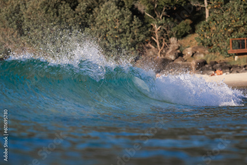© AlexandraDaryl, Obraz premium Beautiful wave breaking on the beach shore.