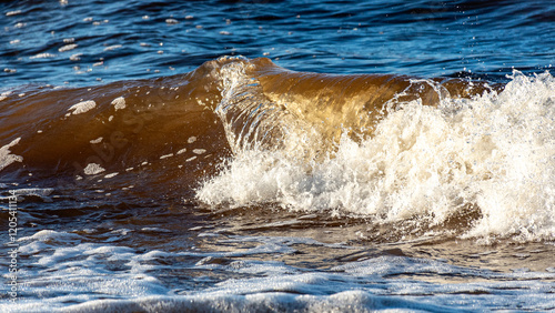 Obraz premium beautiful waves crashing against the seashore, windy day on the rocky shore of Vidzeme, Baltic Sea