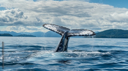 Naklejka premium Beautiful Whale Tail Against Blue Ocean Backdrop