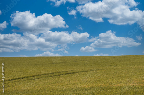 Fototapeta premium beautiful wheat field with cloudy blue sky